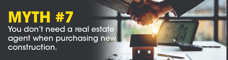The truth: You may not be required to have a real estate agent when entering a new construction deal, but there's no way you’d want to miss out on having your own representation, especially if you’re a first-time home buyer.