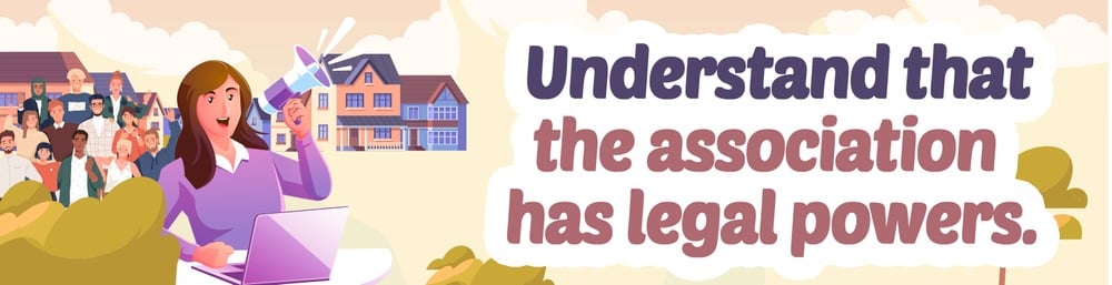 Understand that HOAs are legal entities and that they have the legal right to enforce rules and issue punishments for rule-breakers. Before settling in a particular neighborhood governed by an HOA, explore how rules are set and enforced, what penalties are in place for not following them, and the process for resolving disputes.